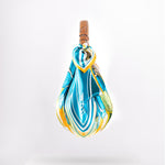 - Silk scarf in turquoise, teal, sunflower yellow and a leafy green, inspired by Adrian’s love of flowers