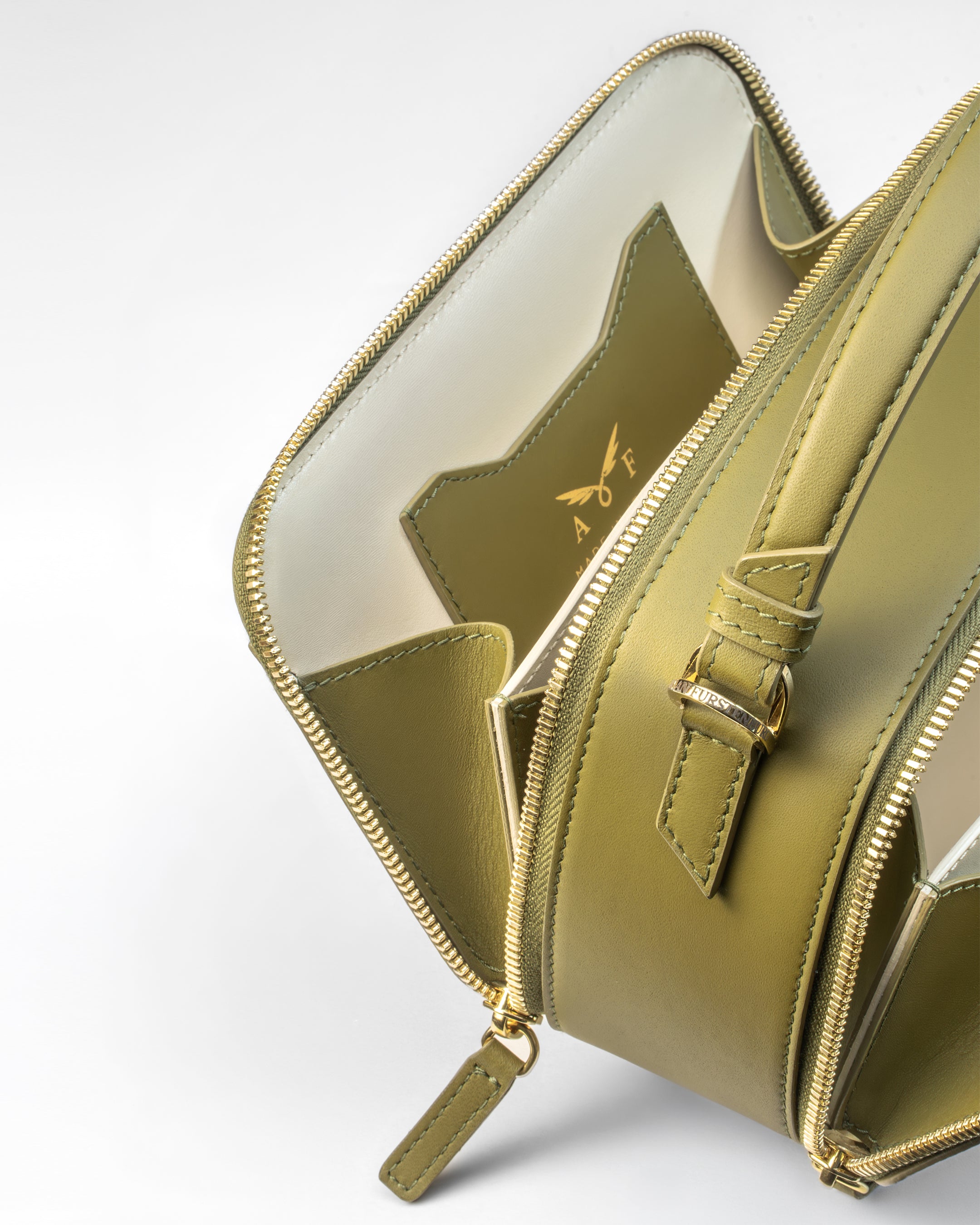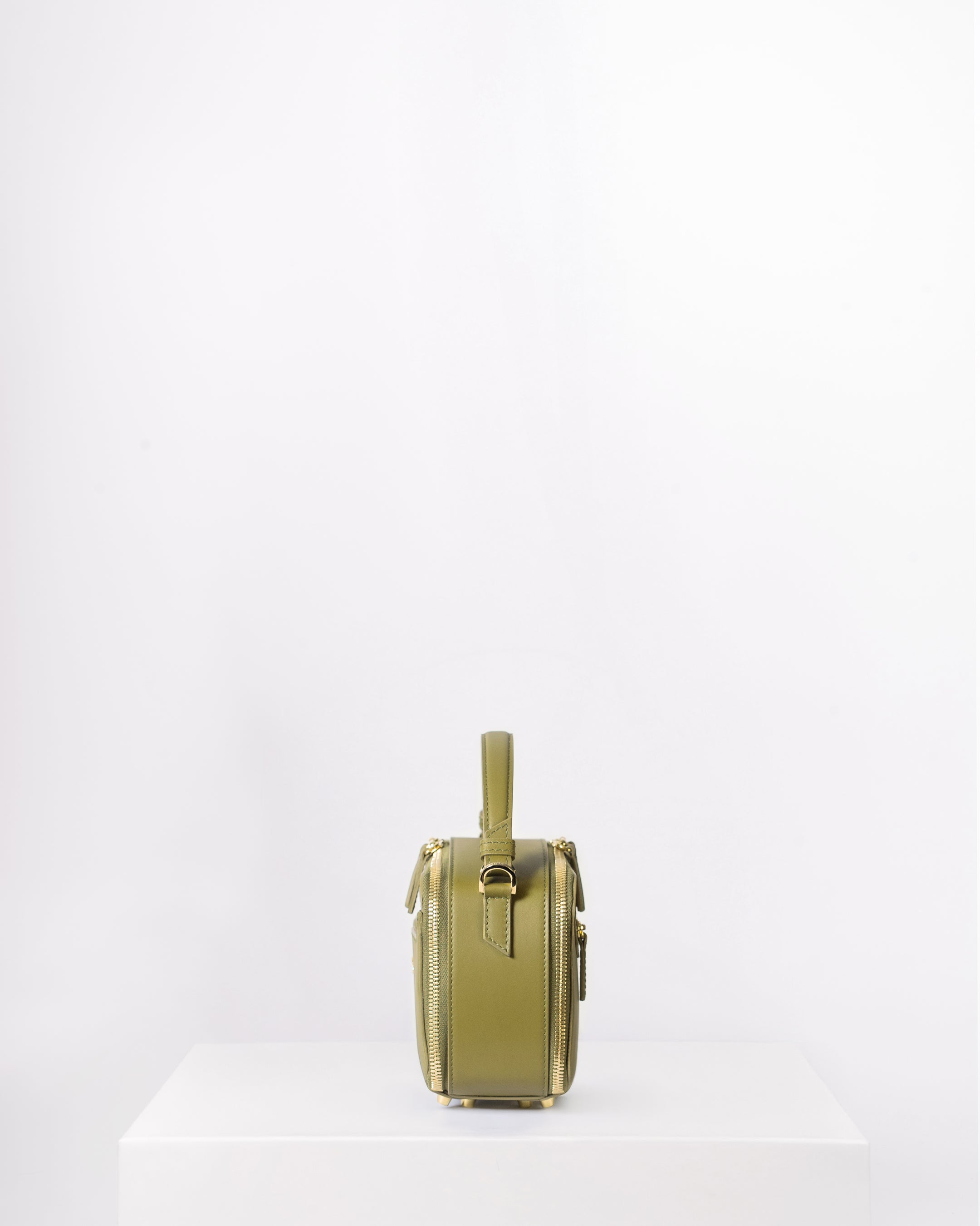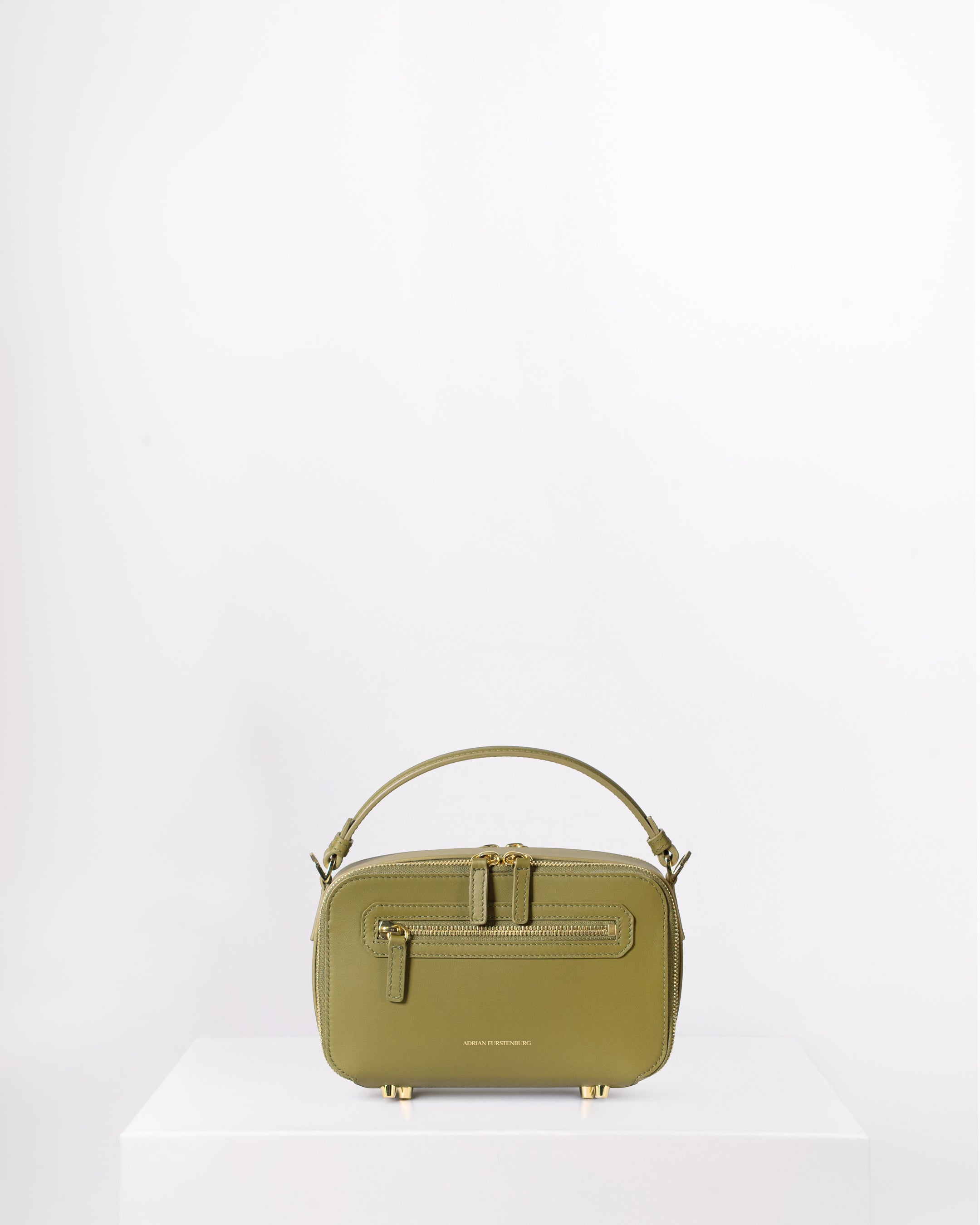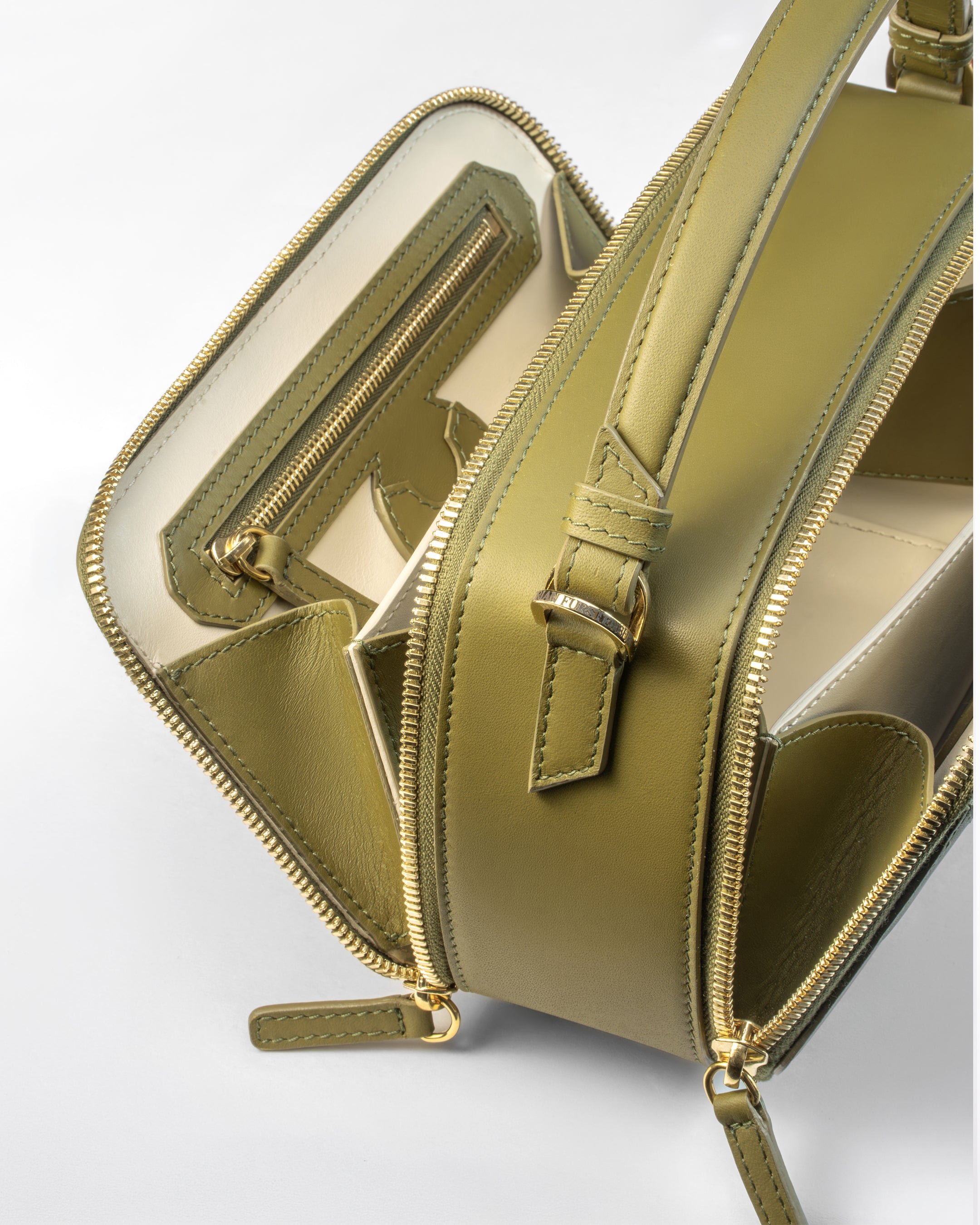 Our Ludmilla darling is sporty, practical, and designed for life-on-the-move. Crafted in our Fresh Olive Green leather, this structured box shape features a top handle, a double-zip closure that brings together form and function, and our signature base with eight protective studs.
